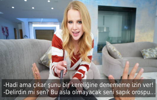 İşlerini yaptığı esnada seks bağımlısı erkeğinin içeri girmesiyle dizlerinin üzerine çöküp kıvrak dil darbeleri ve yarak kapanı memeleriyle muhteşem muamelesini gerçekleştiren tatlı şıllık, bacak arasına aldığı esnada sert sikişi tatmaya başlar. Sırılsıklam olmuş tüysüz amcığın tazeliği ile ayakları yerden kesilerek daha önce bu denli bir sikiş deneyimi yaşamadığını her halinden belli eden tatlı şıllık, bu şiddetli yarağa sonuna kadar direnerek kalçalarının arasını dölle doldurur.